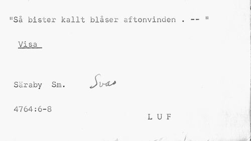 //// nSå bister kallt blåser aftonvinden . -- 11 Visa //// & //// v l //// Säraby Sm. 4764:6-8 //// L U F //// * . ¦¦ ¦ i . , . ////