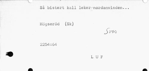 //// Sä bistert kall lekermordanvinden.. . Högseröd (Sk) //// Svw //// 2254:64 ////