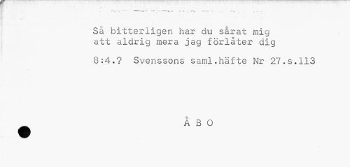 //// Ij .' /}:¦ ' . . . A , //// t"*",, ' ( ' " ¦OP»^-.,- Vay • • — ? " v --¦ - --^ %» »TV- .. ... ... //// Sä bitterligen har du sårat mig att aldrig mera jag förlåter dig //// 8:4.? Svenssons saml.häfte Nr 27.s.113 //// ÅBO //// \ ////