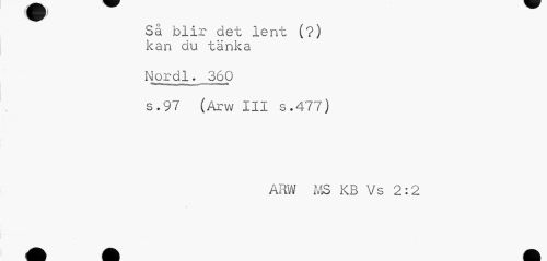 //// ¦ p //// Så blir det lent (?) kan du tänka //// N-ordl. 360 //// *m ii i ii¦ i i 1 //// s.97 (Arw III s.477} //// ARW MS KB Vs 2:2 ////