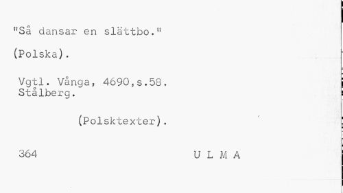 //// I //// uSå dansar en slättbo.11 (Polska). //// Vgtl. Vånga, 4690,s.58. j //// Stålberg. i //// (Polsktexter). //// ¦ //// 364 U L M A ////