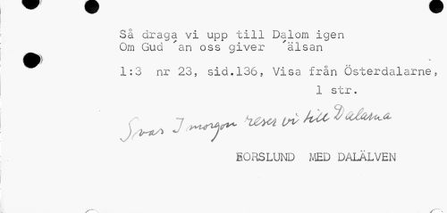 //// Så draga vi upp till Dalom igen Om Gud 'an oss giver 'älsan //// 1:3 nr 23, sid.136, Visa fran Osterdal arne» //// 1 str. //// •7 „ ^ hjZAO) tns ^Ct "itiJu^a //// J^A J //// EuRSLUND MED DALÄLVEN ////