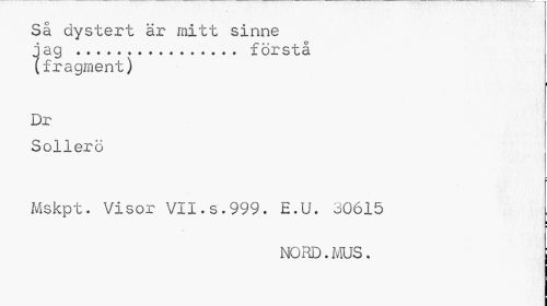 //// Sä dystert är mitt sinne //// iag ... förstå //// (fragment) //// i //// Dr //// Sollero //// Mskpt. Visor VII.s.999. E.U. 30615 //// I ¦ //// NORD.MUS. ; ////