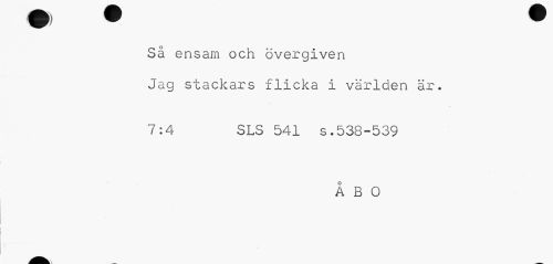 //// Så ensam och övergiven Jag stackars flicka //// i va riden är. 7:4 SLS 541 s.538-539 //// ÅBO ////