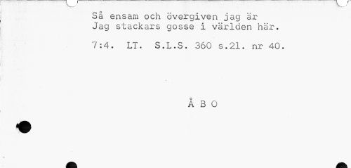 //// Så ensam och övergiven jag är Jag stackars gosse i världen här. //// 7:4. LT. S.L.S. 360 s.21. nr 40. //// ÅBO ////