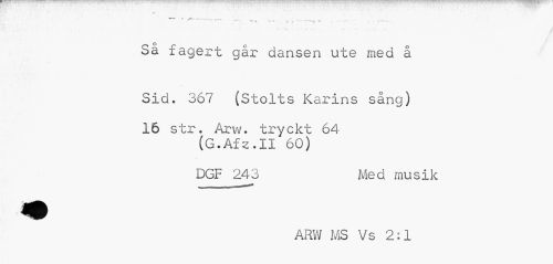 //// ¦m-** T j,*.. ... , ^^___ //// - ^ , •--- ~ r -f , //// Så fagert går dansen ute med å //// Sid. 367 (Stolts Karins sång) //// 16 str. Arw. tryckt 64 //// (G.Afz.II 60) //// DGF 243 Med musik //// ARW MS Vs 2:1 ////