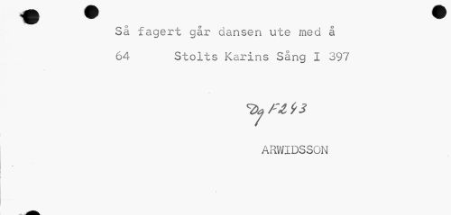 //// Så fagert går dansen ute med å 64 Stolts Karins Sång I 397 //// ARWIDSSON ////
