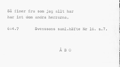 //// Så finer fru som jag allt har har int dom andra herrarna, //// i I //// 6:4.? Svenssons saml.häfte Nr 16. s.7. J //// i i //// i ¦ //// ; //// ÅBO ; ////