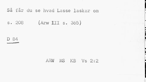 //// O -v o //// Sa far du se hvad Lasse laska r om s. 208 (Arw III s. 365) //// ¦ //// D 84 i //// ¦ //// i //// ARW MS KB Vs 2:2 ////