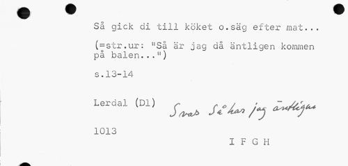 //// Så gick di till köket o.säg efter mat... //// (=str.ur: uSå är jag då äntligen kommen på balen. . .11) //// s.13-14 //// Lerdal (D1) Jw s*4*» /y //// 1013 //// IFGH ////