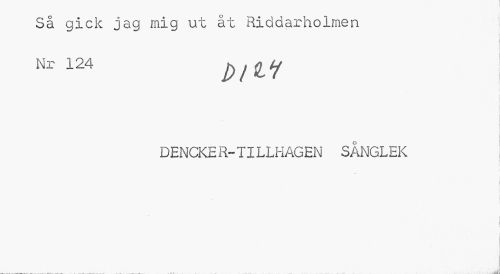 //// Så gick jag mig ut åt Riddarholmen Nr 124 p/iLy //// DENCKER-TILLHAGEN SÅNGLEK //// i I ////