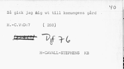 //// 7 o //// Så gick jag mig ut till konungens gård - //// ¦ //// H.-C.V:D:7 ( 288) //// H-CAVALL-STEPHENS KB ////