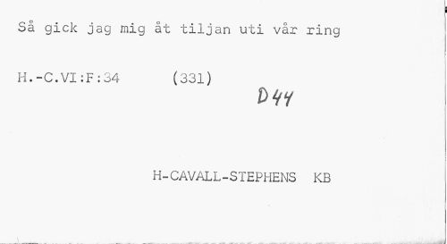 //// ¦ //// Så gick jag mig åt tiljan uti vår ring //// i //// i //// H.-C.VI:F:34 (331) //// . //// 1 I //// H-CAVALL-STEPHENS KB //// l //// .i iMtinII _ — ... . ¦: ////