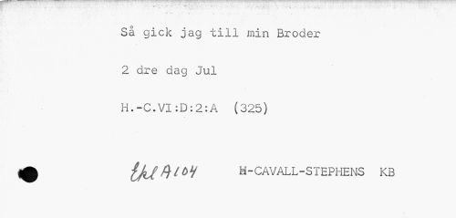 //// • . . . , ' C - 7 //// Sa gick jag //// G11 j- min Broder 2 dre dag Jul H.-C.VI:D:2:A (325) //// A H-CAVALL-STEPHENS KB ////