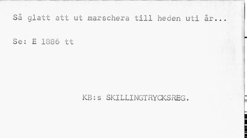 //// iy //// Sa glatt att ut marschera till heden uti år... Se: E 1886 tt //// KB:s SKILLINGTRYCKSREG. • I ////