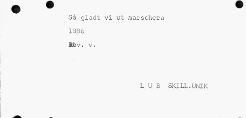 //// Så gladt vi ut marschera 1886 Bfev. v. //// L U B SKILL.UNIK ////