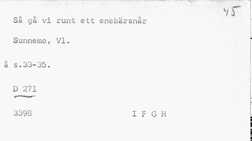 //// Så gå vi runt ett enebärsnår Sunnemo, VI. //// å s,33~35. //// 1 i //// i //// D 271 I //// I //// 3398 I F G H [ ////
