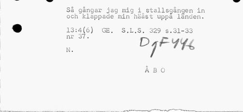 //// Så gångar jag mig i stallsgången in och klappade min häast uppa länden. //// • 13:4(6) GE. S.L.S. 329 s.31-33 //// ÅBO ////