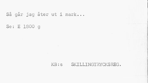 //// Så går jag åter ut i mark... Se: E 1800 g //// KB:s SKILLINGTRYCKS REG. ////