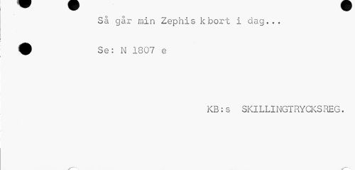 //// Så går min Zephis k bort i dag... ^ Se: N 1807 e //// KB:s SKILLINGTRYCKS REG. ////