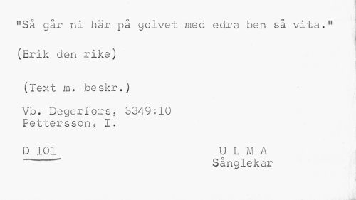 //// nSå går ni här på golvet med edra ben så vita." (Erik den rike) //// i //// (Text m* be skr.) //// Vb. Degerfors5 3349:10 Pettersson? I. //// '£101 ULMA //// Sånglekar //// .1 ////