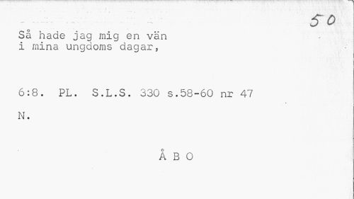//// ' '' • ¦ - : SO //// Så hade jag mig en vän i mina ungdoms dagar, //// o:8, PL. S.L.S. 330 s.58-60 nr 47 N. //// ÅBO ////
