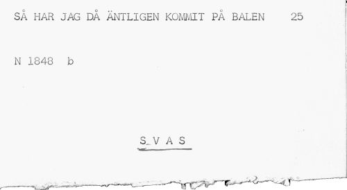 //// SÅ HAR JAG DÅ ÄNTLIGEN KOMMIT PÅ BALEN 25 //// I //// N 1848 b //// \ //// é //// S,V A S ////