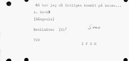//// 9 "Sä har jag då äntligen kommit på balen... //// s. 66-69 //// (Sångvals) //// Botilsäter (V1J ^ ^^ //// r //// 709 //// I F G H ////