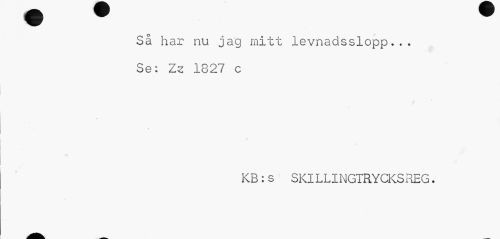 //// Så har nu jag mitt levnadsslopp... Se: Zz 1827 c //// KB:s SKILLINGTRYCKSREG. ////