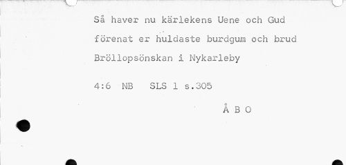 //// Så haver nu kärlekens Uene och Gud //// « //// förenat er huldaste burdgum och brud Bröllopsönskan 1 Nykarleby //// 4:6 NB SLS 1 s.305 //// ÅBO //// v ////