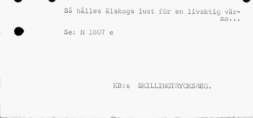 //// Så hålles älskogs lust för en livaktig värma. . . //// ^ Se: N 1807 e //// KB:s SKILLINGTRYCKSREG. ////
