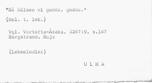 //// nSå halsen vi gudda, gudda.li (Mel. t. lek.) //// Vgl. Vartofta-Åsaka? 3247:9, s.147 Bergstrand, Maja //// (Lekmelodier) //// U L M A //// ___ ..-^^jltkMi___—* . . ---i i", i . i i i , J^.___ ju-. ___Ii ___ JLJLJ 'i&Jli*^**" ~ 11 tji^ *** ffrftwÉ ////