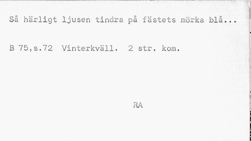 //// Så härligt ljusen tindra på fästets mörka blå... //// ¦ //// B 75,s.72 Vinterkväll. 2 str. kom. //// RA ////