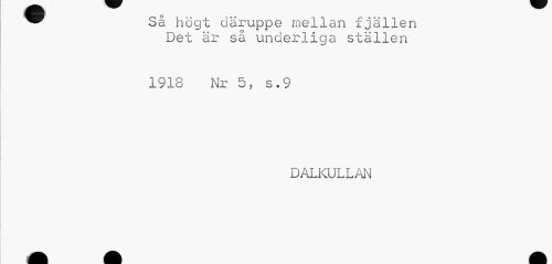 //// ^^ Så högt däruppe mellan fjällen //// Det är så underliga ställen //// 1918 Nr 5, s.9 //// DALKULLAN //// ^^HE^^^B B H ////