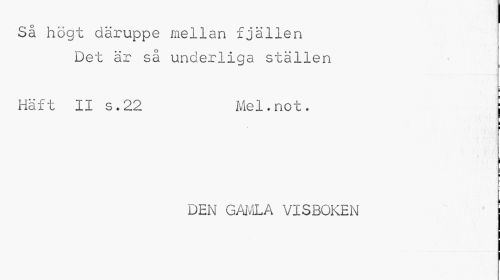//// I //// Så högt däruppe mellan fjällen //// Det är så underliga ställen //// i //// Häft II s.22 Mel.not. j //// ! i //// i ¦ //// ¦ //// - //// DEN GAMLA VISBOKEN ////