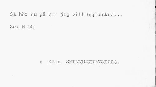 //// i //// Så hör nu på att jag vill uppteckna... Se: H 55 //// a KB:s SKILLINGTRYCKSREG. ////