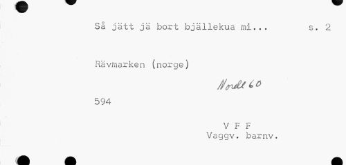 //// Sa jätt jä bort bjällekua mi... s. 2 //// Rävmarken (norge) //// 594 //// V F F Vaggv. barnv. //// fl fl fl fl fl .fl ////