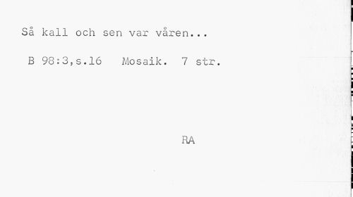 //// I //// Så kall och sen var våren... B 98:3,s.16 Mosaik. 7 str. //// i ¦ //// ¦ ¦ //// i I //// H //// L B //// l //// RA [ ////