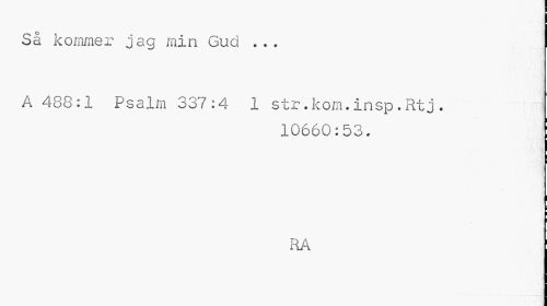 //// Så kommer jag min Gud ... //// A 488:1 Psalm 337:4 1 str.kom.insp.Rtj. //// 10660:53. //// RA ////