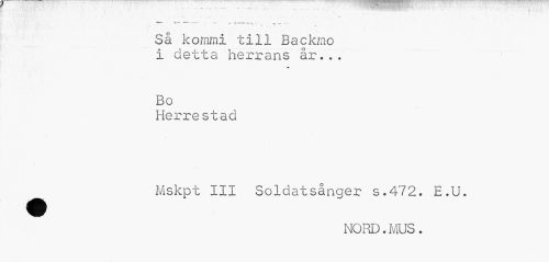 //// •• • % //// •¦ - * , „ ¦ » //// Så kommi till Backmo //// I detta herrans år... //// .. * //// Bo //// Herre stacl //// Mskpt III Soldatsånger s.4'72. E.U. //// NORD. MUS. ////