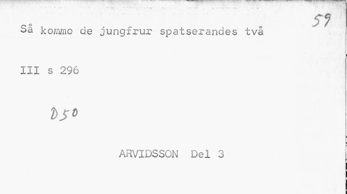 //// 57 //// Sa kommo de jungfrur spatserandes två III s 296 //// DS0 //// i ¦ //// ARVIDSSON Del 3 ////