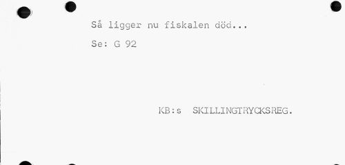 //// I //// i f //// Så ligger nu fiskalen död... Se: G 92 //// i //// KB:s SKILLINGT RYCKSREG. ////