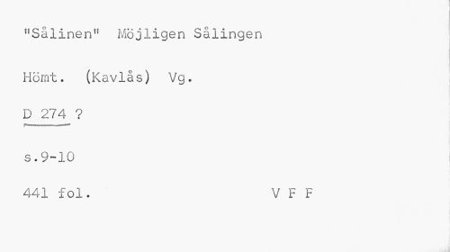 //// "Sålinen" Möjligen Sålingen //// Hömt. (Kavlås) Vg. D 274 ? //// r i — //// s. 9-10 i //// 441 fol. V F F ////