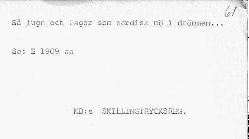 //// v //// Så lugn och fager so/n nordisk mö I drömmen... Se: E 1909 aa //// \ //// KB:s SKILLINGTRYCKSREG. //// i ////