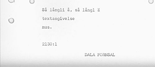 //// So - o o o - .. //// a langli a, sa langl a textangivelse mus. //// 2130:1 //// DALA FORNSAL ////