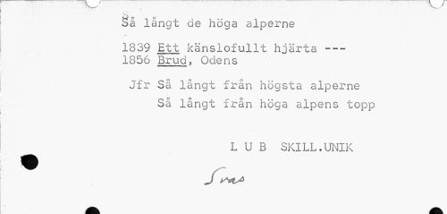 //// äå långt de höga alperne //// 1839 Ett känslofullt hjärta --- //// 1856 Brud, Odens //// Jfr Så långt från högsta alperne Så långt från höga alpens topp //// L U B SKILL.UNIK ////