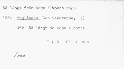 //// Så långt från höga alkpens topp 1864 Ynglingen Den vandrande, a) //// Jfr Så långt de höga alperne //// L U B SKILL.UNIK //// J ////