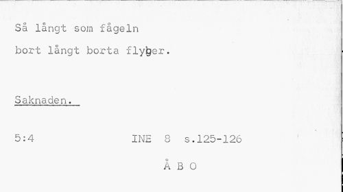 //// Sä långt som fågeln bort långt borta flyger. //// Saknaden. //// www**—» ii>.*m«»«i. i «»»¦¦ m »'« w» i... — //// \ //// 5:4 INE 8 s.125-126 //// ÅBO ////