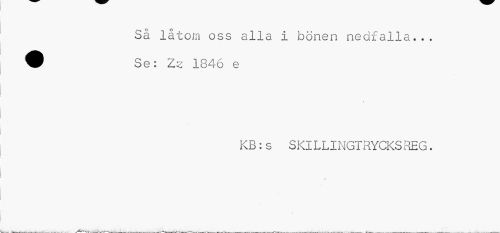 //// Så låtom oss alla I bönen nedfalla... 9 Se: Zz 1846 e //// KB: s SKILLINGTRYCKS REG. //// » //// A ////