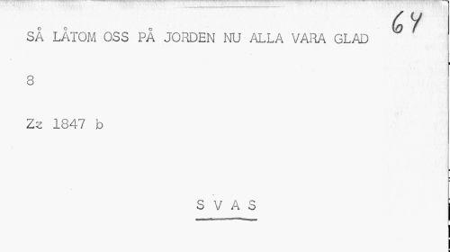 //// SÅ LÅTOM OSS PÅ JORDEN NU ALLA VARA GLAD ^ //// » //// 8 //// Zz 1847 b //// i ¦ //// v. - //// S V A S j ////